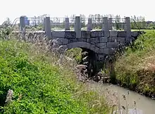 Portions of the highway as it once was, have been saved to posterity in only a few places. For example, it can be seen crossing the Årsta field (Årstafältet) in Enskede-Årsta, south of Södermalm. On Årsta field there is a 900 meter long part of Göta landsväg, and where it passed the Valla brook there is a stone-arched bridge that was built in the 18th or 19th century. It originally was a wade or a simpler wooden bridge. Since long in ruins, it was restored in 1998 after a model of a similar bridge on another part of the highway in Botkyrka. The Göta highway on Årsta field is an ancient monument.[2]