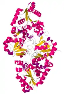 POFUT-1 belongs to the O-Fuc family of proteins all which is involved in the transferring of o-fucose from GDP-β-L-fucose to substrates. POFUT-1 responsible for adding fucose sugars in O linkage to serine or threonine residues between the second and third conserved cysteines in EGF-like repeats on the Notch protein.[1] The protein is an inverting glycosyltransferase, which means that the enzyme uses GDP-β-L-fucose as a donor substrate and transfers the fucose in O linkage to the protein producing fucose-α-O-serine/threonine.