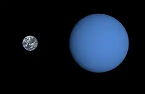 ![]() Size comparison of GJ 3470 b with Earth. | |