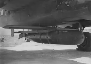 Initially tested during 1943,[1][4] the GT-1 proved to be successful,[5] and was issued to a single operational unit for service.[6] Launched from North American B-25 Mitchell bombers,[1][7] the GT-1 saw brief operational service late in the war;[1][4] three missions are known to have been flown using the weapon from Okinawa in late 1945.[7] On one mission, against Kagoshima, eleven of thirteen GT-1s launched successfully entered the water; three hits were recorded, against a fleet carrier, a light carrier, and a freighter.[7] The Boeing B-17 Flying Fortress was also capable of carrying the GT-1.[3]