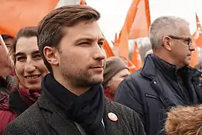 Gabriel Nadeau-Dubois (born May 31, 1990) is a politician from Quebec, Canada. With Manon Massé, he is the co-spokesperson of the left-wing party Québec solidaire since May 21, 2017, and was elected as a member of the provincial legislative assembly on May 29, 2017.[4] Before his arrival in active politics, he was well known for his role during the 2012 Quebec student protests as co-spokesperson of the Coalition large de l'Association pour une solidarité syndicale étudiante (CLASSE), a broad coalition of student associations opposed to the $1,625 tuition hike introduced by Jean Charest's government. He quit that position on August 9, 2012.