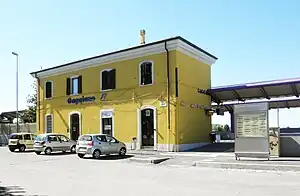Gaggiano railway station is a railway station in Italy. Located on the Mortara–Milan railway, it serves the municipality of Gaggiano.