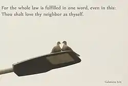 Using the citation from Leviticus 19:18 Paul speaks positively about the law which is "fulfilled" in the coming of Christ.[2][lower-alpha 1]