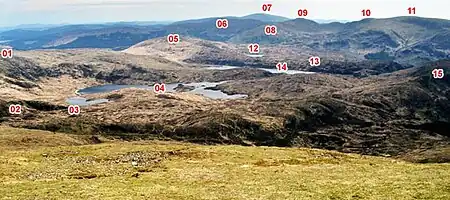 The Galloway Hills are part of the Southern Uplands of Scotland, and form the northern boundary of western Galloway. They lie within the bounds of the Galloway Forest Park, an area of some 300 square miles (800 km2) of largely uninhabited wild land, managed by Forestry and Land Scotland. The unusual place names reflect a mixture of the Old Norse and Scottish Gaelic languages and hint at the range of influences which have acted on society within the area over the centuries.
