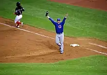 - ↑ Bastian, Jordan; Muskat, Carrie (November 2, 2016). "Cubs are heavy wait champions!". MLB.com. Cleveland. Retrieved November 2, 2016.
