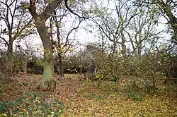 The main trees in this wood are ash and field maple, but there are also several wild service trees. Spring flowers include bluebells, wood anemones and yellow archangels, and there are birds such as fieldfares and nightingales.[1]