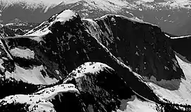 Gamuza Peak, is a 1,944-metre (6,378-foot) granitic mountain summit located in the North Cascades of southwestern British Columbia, Canada. It is situated 12 km (7 mi) west-northwest of Coquihalla Summit, and its nearest higher peak is Steinbok Peak, 1.3 km (1 mi) to the northwest.[2] Precipitation runoff from the peak drains into tributaries of the Anderson River. The mountain was named for the gamuza, the Spanish name for the Pyrenean chamois, as part of the ungulate theme for several other nearby peaks that were submitted by Philip Kubik of the first ascent party.[3] The mountain's name was officially adopted on February 5, 1976, by the Geographical Names Board of Canada.[4]