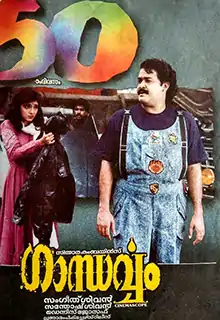 Gandharvam is a 1993 Indian Malayalam-language romantic thriller film directed by Sangeeth Sivan and written by Dennis Joseph from a story by Alex I. Kadavil and Sangeeth Sivan. It was produced by Suresh Balaje and stars Mohanlal and Kanchan (in her only Malayalam film), while Jagathi Sreekumar, Devan, Vijayakumar, Prem Kumar and Kaviyoor Ponnamma appears in supporting roles. The music was composed by S. P. Venkitesh.It was Mohanlal's 200th Film.
