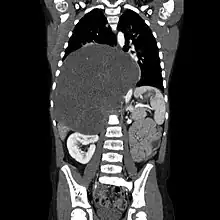 | CT scan of a large ganglioneuroma within the chest cavity | |