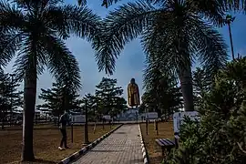 Gani Fawehinmi Park, formerly known as Liberty Park, is a public green space located in Ojota, Lagos, Nigeria just by the Lagos-Ibadan Expressway and Ikorodu Road Interchange, Lagos. The park was built in honor of the Nigerian human rights activist and lawyer Gani Fawehinmi to which a large statue of his was conspicuously placed in the middle of the garden. This statue measuring 44 feet tall was commissioned April 21, 2018[1] by the Lagos State Government. The garden also has little signposts that tell a brief story about his lifetime. Other sculptures, soft landscape and benches were incorporated to make the space attractive and befitting for relaxation and small events. It was the venue of the Yoruba Nation Rally that happened July 3, 2021[2]