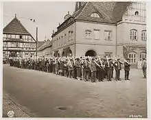 Within days, some 4,000 prisoners from Mittelbau-Dora, its satellite camps, and from the Neuengamme subcamp Hannover-Stöcken arrived in the Gardelegen area, where they had to deboard from the freight cars because the trains could not advance any further due to air raid damage to the rail lines. Greatly outnumbered by the prisoners, the SS guards began recruiting auxiliary forces from the local fire department, the air force, the aged home guard, the Hitler Youth, and other organizations to watch over the inmates.