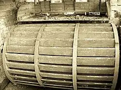 The mill was renovated under the auspices of the Columbiana Forests and Park Council (now the "Friends of Beaver Creek State Park").[4] Restoration began in January 1964. The council commissioned Lorin Cameron of Damascus, Ohio to undertake the restoration of the mill.[9] During the reconstruction, the building was straightened and wood beams were replaced in the basement. The mill's siding and part of the floors were replaced and a new shingle roof was installed. A new roof was put on the building using shingles produced by an old shingle machine built in 1857 in Salem, Ohio. Most of the wood timbers and posts are original.[5]