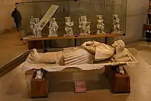 A very elaborate tomb was commissioned for Gaston in Milan from the workshop of Agostino Busti,[4] which despite never being completed and assembled remains a key work in art history, and especially French Renaissance art, with (as planned) classicising relief panels of his campaigns around the base of the sarcophagus, surmounted by a more traditional recumbent effigy. Most of the pieces are on display in the Castello Sforzesco.