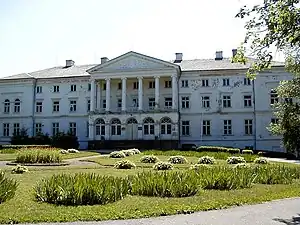 It was built between 1850 and 1860 in late Classical style. The six-column portico was added later. Since 1922 the palace has housed the Gaujiena comprehensive secondary school (Gaujienas ģimnāzija).[2][3]