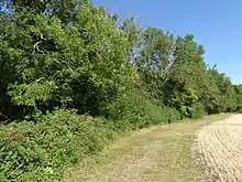 This ancient wood on poorly drained chalky boulder clay has coppiced hornbeam, ash and hazel with oak standards. The ground flora is especially diverse around the hornbeams and on wet rides.[3]