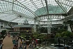 Opryland Hotel opened on November 24, 1977, on land adjacent to the Opryland USA amusement park.[3] The hotel was originally built to support the Grand Ole Opry, a Nashville country-music institution that had moved to the area three years before. The hotel at that time had 580 guest rooms and a ballroom. The Magnolia Lobby was designed to resemble a grand Southern mansion with an impressive staircase and a Tiffany-style chandelier.[4]