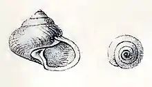 Drawing of apertural and apical view of a shell of Gaza daedala.