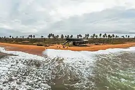 Gberefu Island also known as Point of No Return is a populated historical island located in Badagry, a town and local government area of Lagos State, South-Western Nigeria.[1] Symbolized by two poles slightly slanted towards each other and facing the Atlantic Ocean, the island was a major slave port after it was opened in 1473 during the Trans-Atlantic Slave Trade era.[2] According to Nigerian historians, as many as 10,000 slaves were believed to have been shipped to the Caribbean and Americas between 1518 and 1880 from the island.[3]