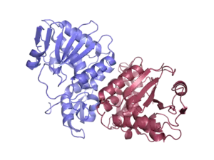 Gelonin is a dimer consisting of two identical monomers, colored red and blue. PBD 3ktz