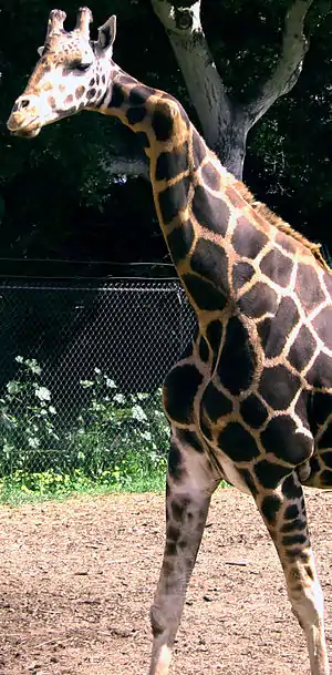 Gemina (July 16, 1986 – January 9, 2008) (pronounced Jeh-MEE-nah)[1] was a 12-foot-tall (3.7 m) Baringo giraffe[2] who lived in the Santa Barbara Zoo in Santa Barbara, California.[2] She became notable for the peculiar deformity in her neck, which was bent by almost ninety degrees between her C3 and C4 vertebrae. The deformity was not present when she was born, in the San Diego Wild Animal Park, but first became noticeable when she was three years old.[2]