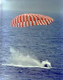 The day of the EVA was also their last in space. On their 45th revolution of the Earth, the crewmen fired the retro-rockets that slowed them down so that they would reenter. This time the computer worked perfectly, meaning they landed only 700 meters from the planned landing site and were close enough to see the prime recovery ship, USS Wasp. The splashdown happened closer to the recovery ship than any other crewed spacecraft.