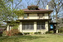 The Gemmill-Faust House is a historic house at 321 St. Andrew's Terrace in West Helena, Arkansas. It is a two-story wood-frame structure with a brick-face exterior, built c. 1920. The house is an excellent local example of the Prairie School of design, with its broad spreading eaves, hip roof with hipped dormer, light-colored brick, and ribbon windows throughout. A period garage stands west of (behind) the main house.[2]