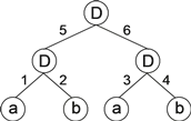 Then the ?'s in the expression tree are replaced from left to right and from top to bottom by the symbols (for simplicity represented by numerals) in the Dc, giving: