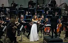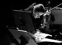 She works with composers such as Karol Beffa, who dedicated "Supplique" for solo violin to her, Nicolas Bacri, Bruno Mantovani and Philippe Hersant, for whom she premiered "Nostalgia", a work for violin and choir. Benjamin Attahir also dedicated to her "Nachtspiel"[4] for violin and orchestra. She performs in festivals in France - such as Strasbourg, Colmar, Prades, Les Serres d'Auteuil, the Midem in Cannes - and abroad - Kuhmo (Finland), MDR in Dresden, NDR in Hamburg, Mehta Foundation in Bombay... and in places like the Philharmonie de Paris, La Seine Musicale, the Auditorium of Radio France, the Théâtre du Châtelet, the Salle Gaveau, the Halle aux Grains de Toulouse, the Arsenal de Metz, the Opéra-Théâtre d'Avignon, the Métropole de Lausanne[5] the Centre for Fine Arts, Brussels, the Tapiola in Helsinki, the Palacio.