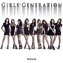 "Genie" was released digitally on June 22, 2009, in South Korea.[11][12] In Japan, the song was released on September 8, 2010, as the group's debut Japanese single.[13] The Japanese Maxi CD and DVD format of the single contains the Japanese version, the Korean version, and the karaoke version of the former.[2] A limited edition CD and DVD format was released in both Japan and Taiwan; it featured a 14-paged booklet of photos, lyrics, and credits to the single, the original Japanese Maxi CD and DVD tracks, all housed in a digipak.[14] The cover sleeve for both formats features Girls' Generation in different black and gold dresses, all standing in front of a white backdrop.[2][14]