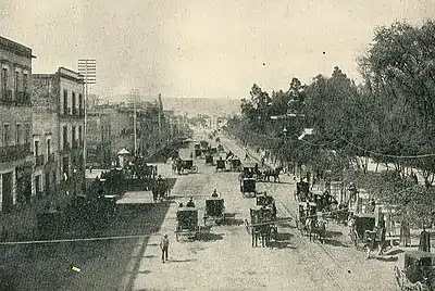 As the Spanish institutions generated wealth for the Spanish crown, the Mexican population experienced an extreme inequality, unable to benefit from its economic potential. From the Independence in 1821 to the Mexican Revolution in 1910, disparities among social groups persist and political instability is fostered through multiple dictatorships, corruption and rotations of power. Monopolies run by elites are supported by the government, while the majority of the population is left with inefficient public services with no access to education or economic incentives and little to no agency over how the country is run. The Industrial Revolution empowers the nation with economic growth based on the exportation of goods and external investments, yet the distribution of wealth remains centralized. This affects how the city is physically developing around a core, cultivating density of population, as well as a massive urban expansion that reflects its sudden economic and cultural global presence.[8]
