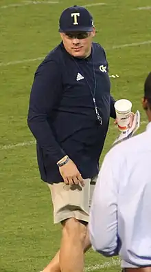 William Geoffrey Collins (born April 10, 1971)[1] is an American football coach and former player. He is currently serving as the defensive coordinator at the University of North Carolina at Chapel Hill. Prior to the Tar Heels, he was the head coach at Georgia Tech from December 7, 2018, to September 25, 2022. He was previously the head coach at Temple University,[2] and had served in the past as defensive coordinator for the University of Florida and Mississippi State University.[3]