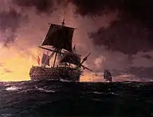 "Tormented Giant" by Geoff Hunt, showing the style of nautical art of this artist