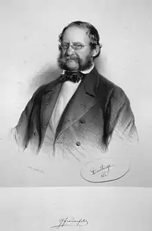 Georg Ritter von Frauenfeld (3 June 1807, Vienna – 8 October 1873) was an Austrian naturalist and one of the leading scientists on board the Austrian frigate Novara during its round-the-world voyage. He was heavily involved in the development of the Naturhistorisches Museum in Vienna, where he was a curator.