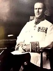 George Bradley McFarland (1866–1942), also known by the Thai noble title Phra Ach Vidyagama (Thai: พระอาจวิทยาคม, RTGS: Phra Atwitthayakhom), was a Siam-born American physician who was instrumental in establishing modern medical education in Thailand. A son of Presbyterian missionary Samuel G. McFarland, he was born and grew up in Siam (as Thailand was then known) and studied medicine and dentistry in the United States, before returning to head the newly established Royal Medical College at Siriraj Hospital (now the Faculty of Medicine Siriraj Hospital at Mahidol University), where he taught for 35 years before retiring. He wrote the first Thai medical textbooks, compiled a Thai–English dictionary, and popularized the use of Thai-language typewriters.[1][2]