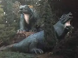 The Grade I Iguanodon sculptures still on display in Crystal Palace Park South London, though no longer considered an accurate reconstruction from the fossils