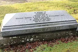 He died of old age on 19 February 1913. He is buried in the cemetery of Logie Kirk. The grave lies towards the south-east.