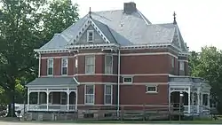George H. Vehslage House is a historic home located at Seymour, Jackson County, Indiana. It was built in 1894, and is a 2+1⁄2-story, Queen Anne style brick dwelling with a limestone foundation. It features a corner tower with a hexagonal roof, irregular floorplan, and one-story full width front porch with ornate woodwork. Also on the property is a two-story carriage house.[2]: 3