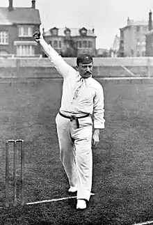 Although quiet with the bat against Hampshire, Nichols took eight wickets in the match, seven of them coming in the second-innings as Somerset won by 168 runs.[13] In the next two matches, he scored only ten runs in his three batting innings, and took one wicket in each of his four with the ball in hand. The final match of the season brought him seven further wickets,[14] and secured Somerset an unbeaten season.[4] Nichols finished the season second amongst Somerset wicket-takers, his 79 wickets trailing only the 126 taken by Tyler.[4] In the 556.1 overs that he bowled in the season, he delivered only two no-balls.[4] From the matches with available scorecards,[note 1] Nichols took five-wicket hauls on six occasions in 1890 and claimed ten wickets in a match twice. Unfortunately for Somerset, he was unable to replicate this form in the following first-class seasons, finishing his career with seven first-class five-wicket hauls, and no ten-wicket matches.[15]