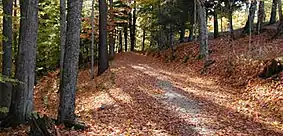 Extending up the hillside to the west is a conservation landscape of more than 600 acres (240 ha), through which carriage roads and trails traverse a variety of ecosystems and landscapes. A pond is located near the center of the high valley, and there are several scenic viewpoints accessible from the trails. The property extends westward all the way to Prosper Road, where trailhead access is also provided to the western portions of the park.