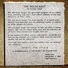 Text accompaniment to The Holocaust Memorial at the California Palace of the Legion of Honor, San Francisco, dedicated 1984.
