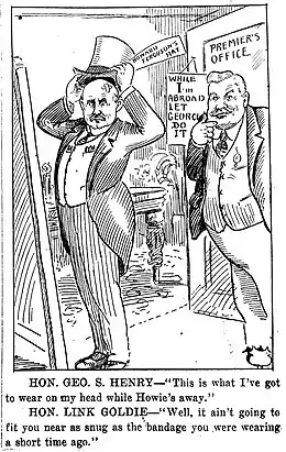 Political cartoon depicting Henry and Lincoln Goldie during the tenure of Howard Ferguson