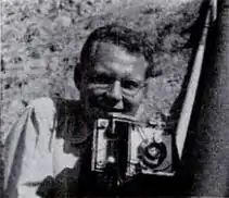 ![]() George Strock poses behind his camera. | |