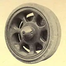 This opened new horizons for the Dayton Steel Foundry to an entirely new industry – trucks. [7] The wooden spoke wheel was on its way out. A patent was granted for the first practical cast steel wheel for solid rubber tires to Walther and the Dayton Steel Foundry on December 13, 1913. [8]