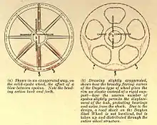 Existing wheels with either 6 or 8 wooden or solid steel spokes would break from either the weight of the cargo or from jarring from bumps in uneven roads. Walther designed a wheel with an odd number of spokes, either 5 or 7, that would better distribute the weight of the cargo across the truck wheels and axles. [6]