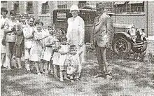 George and Katie Walther "line-up" taken in July, 1926. Notice the cast steel wheels on the car. A portion of the Dayton Steel Foundry can be seen in the background. Children: Elizabeth(Waff), George Jr, John, Jimmy, Gretchen(Jinx), Jacob(Jep), David, Mary Jane(MJ), & Daniel.