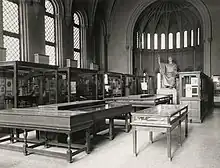 The statue on display in the west wing of the Smithsonian Castle, c.1920s or 1930s