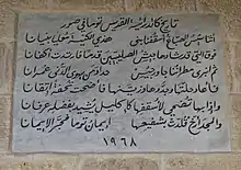 1968 plaque in the facade of St. Thomas commemorating the efforts of Haddad