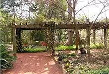 Several species of birds spend time in the garden including robins, wood thrush, brown thrashers, mockingbirds, various species of sparrows, and cardinalids, all native to southern Georgia. Squirrels also live on the grounds. Bees and butterflies are usually busy with the various flowers. The garden has a large number of flowering plants including camellias, azaleas, flowering quince, roses, magnolia trees, redbud trees, and others. One-room schoolhouse The Oak Grove Schoolhouse, a historic one-room schoolhouse originally located in Tatnall County, was moved to a site in the garden in 2010. It is one of few surviving out of 7,000 in the state in 1900.[1]