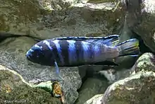 Gephyrochromis lawsi is a species of haplochromine cichlid which is endemic to the northern part of Lake Malawi in Malawi and Tanzania.[2] This species is normally found at deep levels where the steep, rocky coastlines meet sand substrates where it prefers patches of sand at average depths of around 20 metres (66 ft).[2] They feed mainly on loose aufwuchs. The males are weakly territorial and will defend their territories against intruderswhile the females are solitary. It may be threatened by overfishing by fishermen using beach seine nets, although it is a bycatch rather than one of the target species, it is sometimes collected for the aquarium trade.[1] The specific name honours the Scottish missionary Robert Laws (1851-1934).[3]