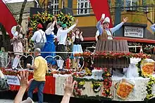 Despite these gaps, a significant number of cultural centers, museums, and archives seek to study, preserve, and disseminate the German legacy, with several historical buildings in colonial cities having been listed.[40][41][42] The Oktoberfest of Santa Cruz do Sul is one of the largest Germanic festivals in the state and since 2006 an official Cultural Heritage event of Rio Grande do Sul.[43] The Romantic Route includes 13 municipalities of German tradition, counting with an expressive heritage, monuments, museums, festivals, and other attractions related to the history and popular culture of the region.[44]